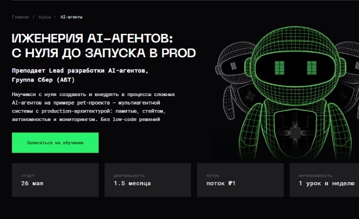 На курсе вы научитесь создавать и внедрять сложные AI-агенты в реальные процессы без использования low-code инструментов и черного ящика. Вместо простых примеров будет рассматриваться полноценный проект — мультиагентная система с production-архитектурой, включая память, состояния и автономность.