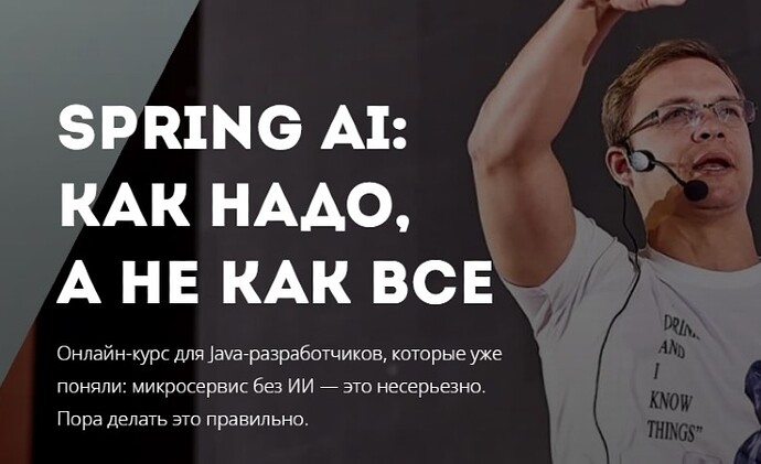 Курс будет полезен тем, кто уверенно использует Java и знаком с основами Spring, а также тем, кто стремится применять AI на практике. Участники научатся создавать микросервисы с использованием Spring AI, локальных моделей и RAG, получат адаптируемый код и понимание проектирования эффективных AI-интеграций.